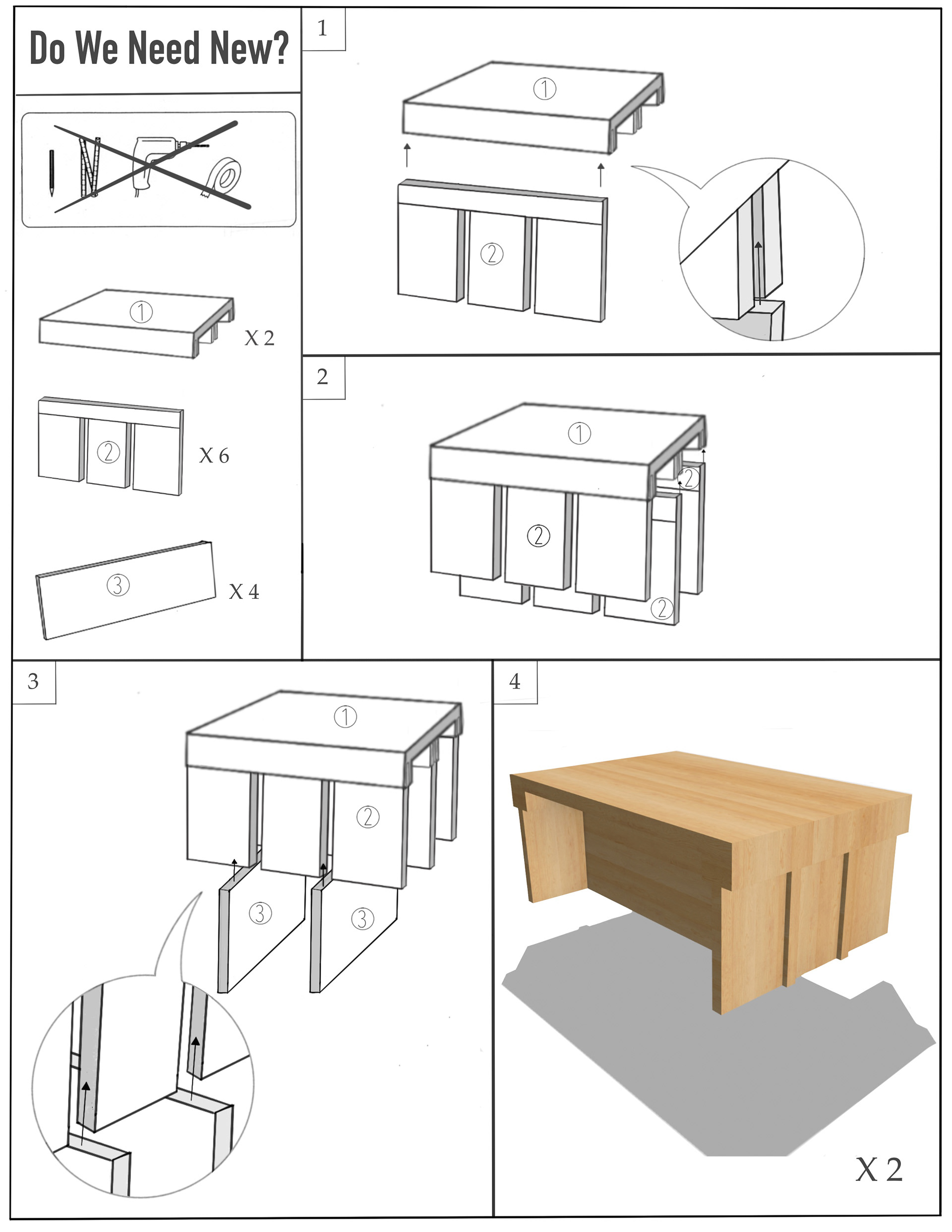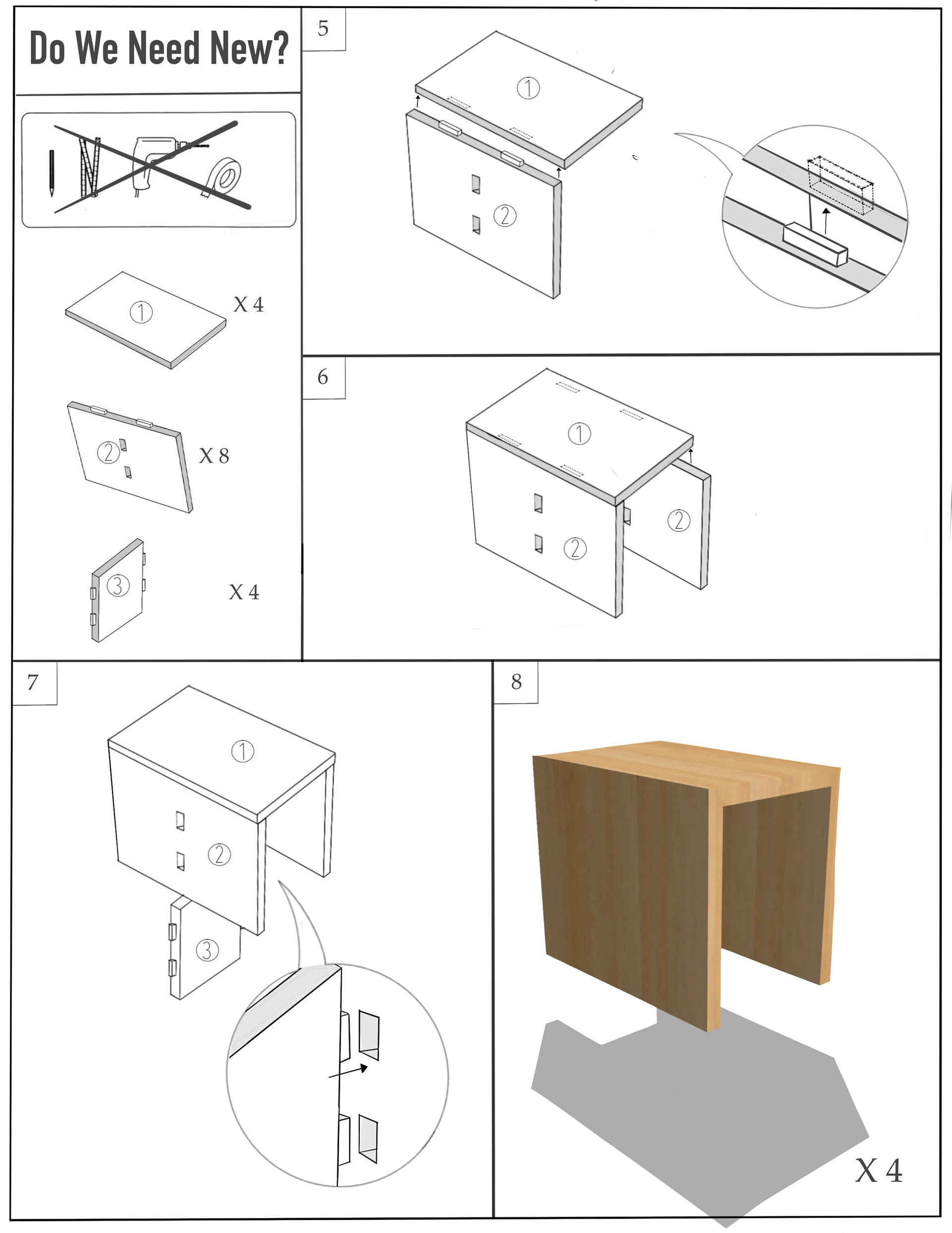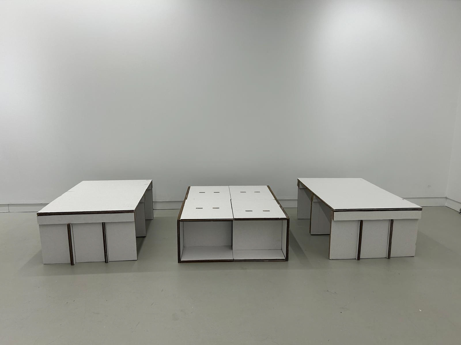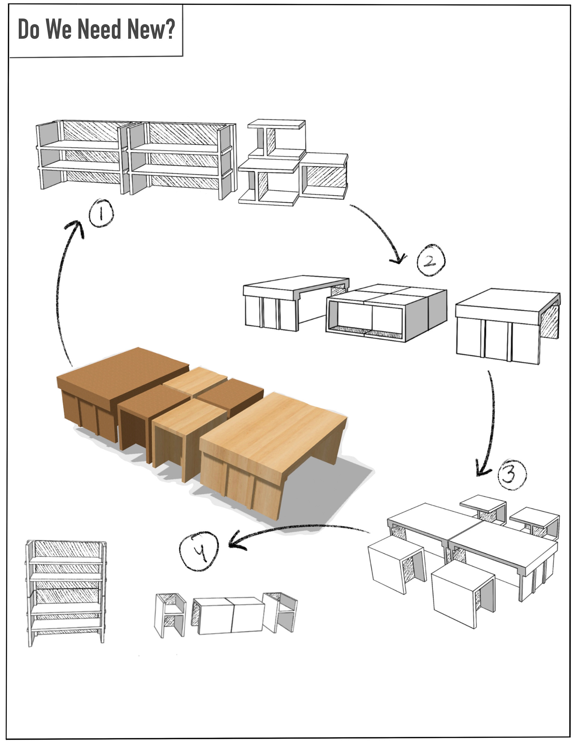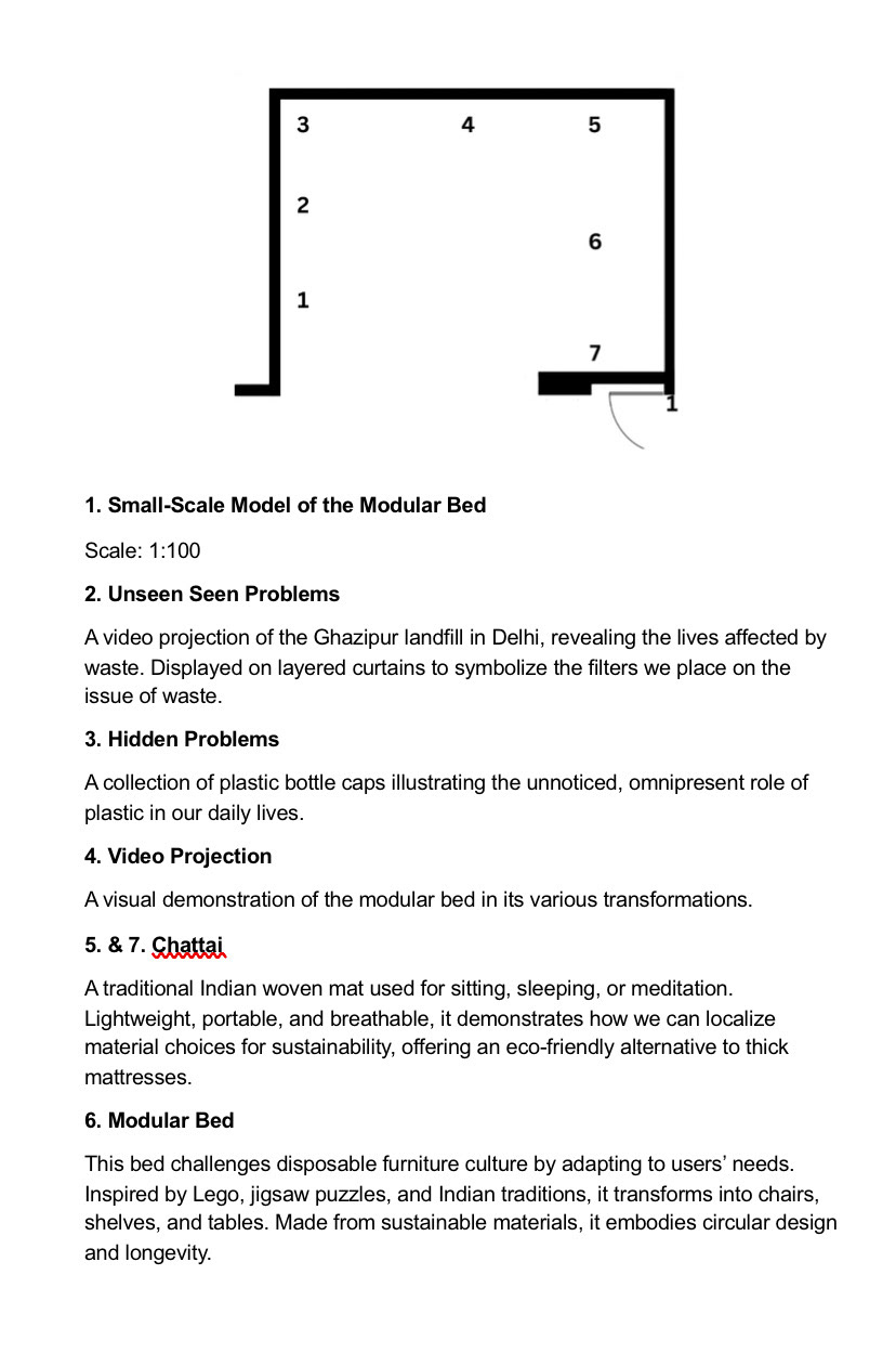 Made from found materials and grounded in circular design principles, the system shifts between a bed, couch, dining table, and storage unit. More than student furniture, it's designed to endure, reconfigure, and invite reflection.